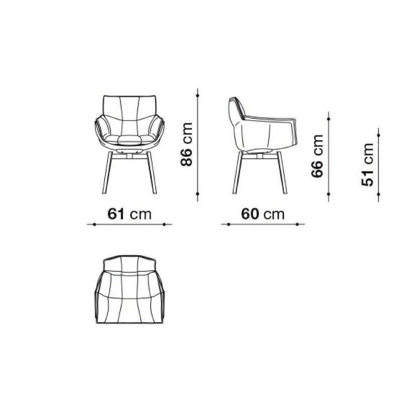B&B Italia HUSK Stuhl, Schale mit Kernlederbezug