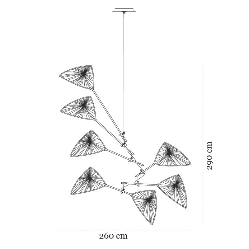 Kinetische Leuchteninstallation - Schirme werden durch den Luftstrom bewegt