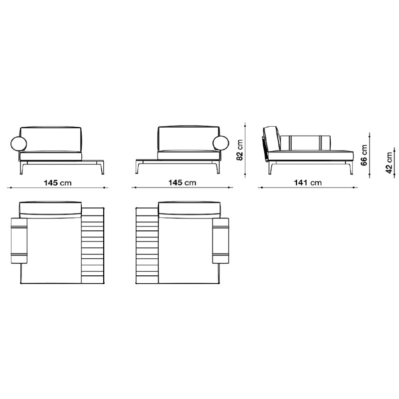 B&B Italia Outdoor RIBES Chaiselongue mit Teakablage und Rollenarmlehne