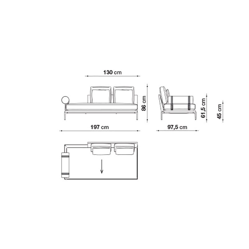 Ersatzbezug für B&B Italia ATOLL 2er Endelement Rückenlehne rechts, Rollen-Armlehnen