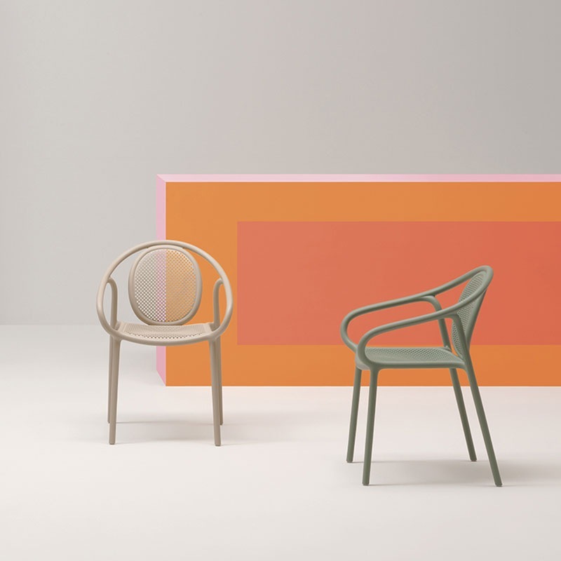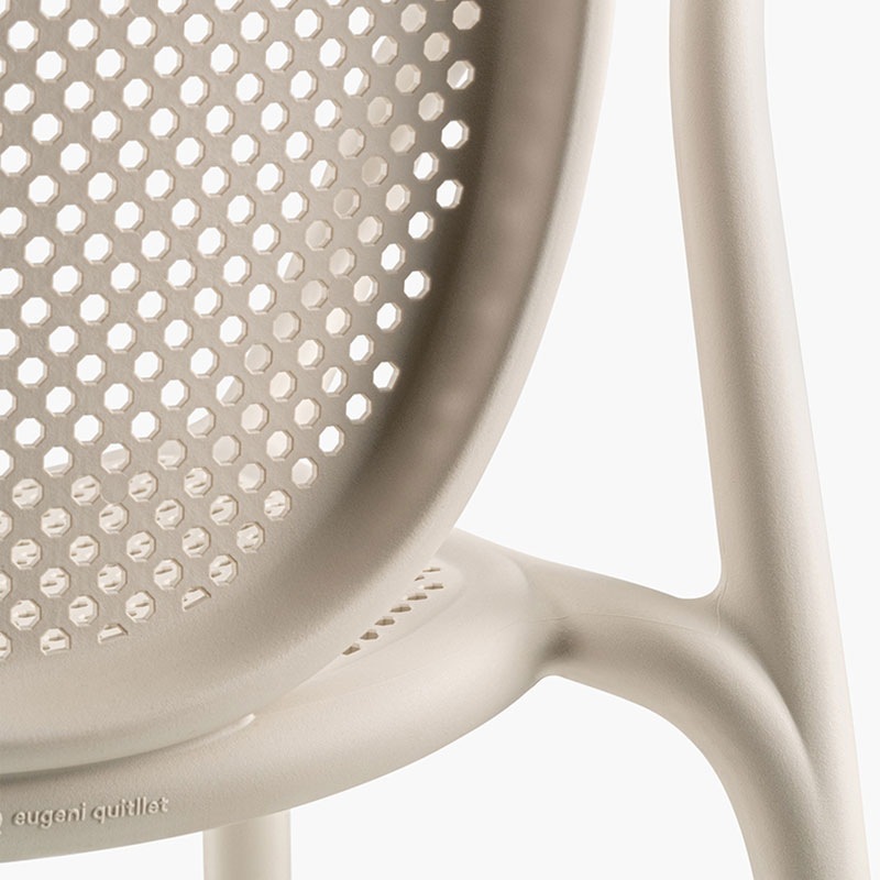 Der Armlehnstuhl in Ausführung "recycelt grey" ist vollständig aus recyceltem Material hergestellt