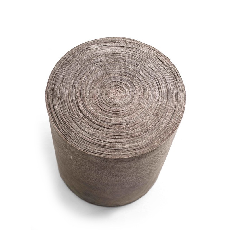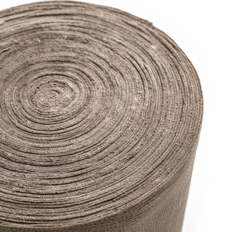 Das aufgerollte Leder eirinnert an Baumringe eines gesägten Baumstammes.