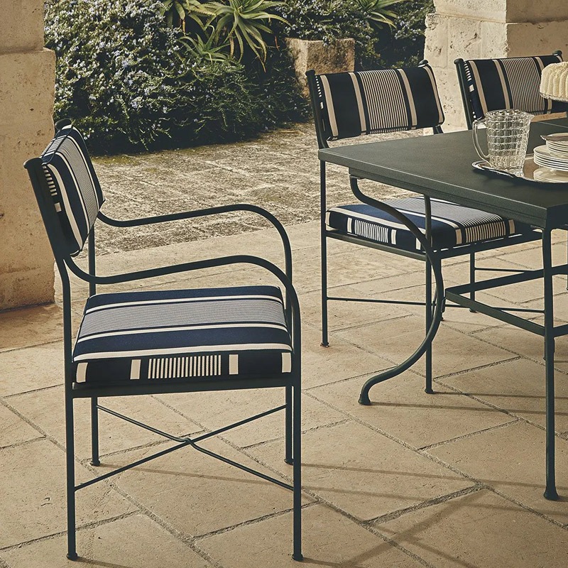 Die zeitlos-eleganten Eisenmöbel vereinen Ästhetik, Langlebigkeit und Zweckmäßigkeit, da sie im Winter nicht drinnen gelagert werden müssen. Um Staunässe zu vermeiden, ist es ratsam, Eisenmöbel nach dem Regen in der Sonne trocknen zu lassen, bevor man sie abdeckt.