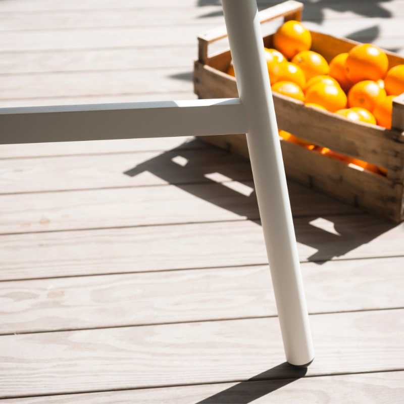 Die Unterkonstruktion ist in zwei Farbvarianten erhältlich und besteht aus pulverbeschichteten Stahlbeinen mit kreuzförmiger Verstrebung.