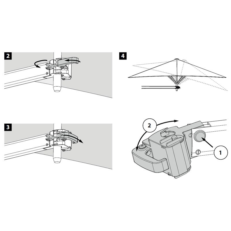 Schirmgestell in Aluminium oder Black.